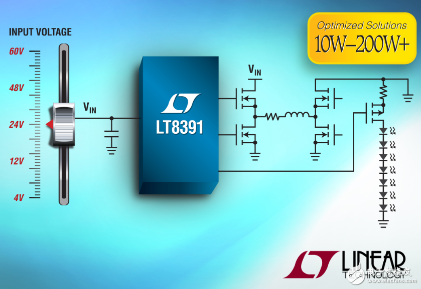 Linear公司的LT3791是同步的四開關(guān)升壓-降壓LED驅(qū)動(dòng)控制器,可使VIN高于、低于或等于VOUT,效率高達(dá)98.5%,輸入電壓4.7V~60V,輸出電壓0V~60V,LED電流精度