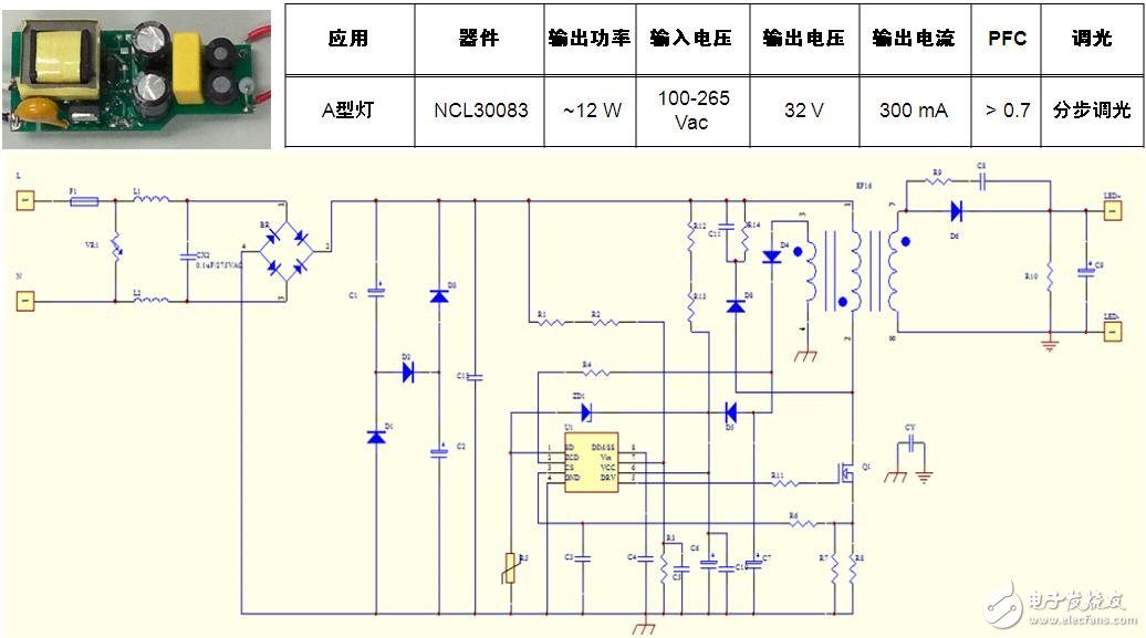 基于NCL30000的高效LED驅(qū)動方案及TRIAC調(diào)光設(shè)計 介紹安森美半導(dǎo)體NCL30000單段式高功率因數(shù)LED照明驅(qū)動設(shè)計方案,22W負(fù)載通用主電源輸入