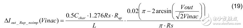 公式(11)推導(dǎo)出LED電流變化,但是這種變化在整個(gè)輸入范圍受Rs、L、Cchar和Rup容限的影響。根據(jù)批量生產(chǎn)要求,我們對(duì)其進(jìn)行如下分析: