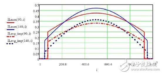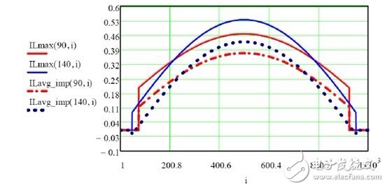 圖6 140Vac以下電感電流和輸出電流的仿真結(jié)果