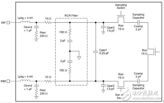 傳統(tǒng)的窄帶無線接收機(jī),DVGA+抗混疊濾波器+ADC 鏈路的設(shè)計(jì)中,我們默認(rèn)ADC 為高阻態(tài),在仿真抗混疊濾波器的時候忽略ADC 內(nèi)阻帶來的影響。但隨著無線技術(shù)的日新月異,所需支持的信號帶寬越來越寬,相應(yīng)的信號頻率也越來越高,在這樣的情況下ADC 隨頻率變化的內(nèi)阻將無法被忽視。