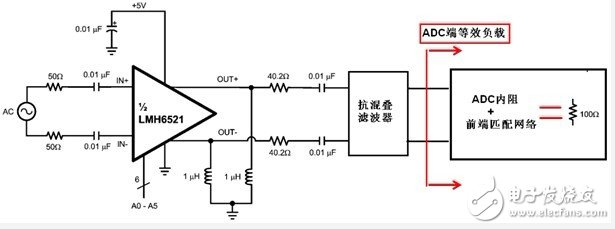 為了取得較好的信號帶內(nèi)平坦度,引入了ADC 前端匹配電路的設(shè)計(jì),特別是對于non-input buffer的ADC在高負(fù)載抗混疊濾波器應(yīng)用場景下,前端匹配電路的設(shè)計(jì)在超寬帶的應(yīng)用中就更顯得尤為重要。本文將以ADS58H40為例介紹ADC前端匹配電路的設(shè)計(jì)。