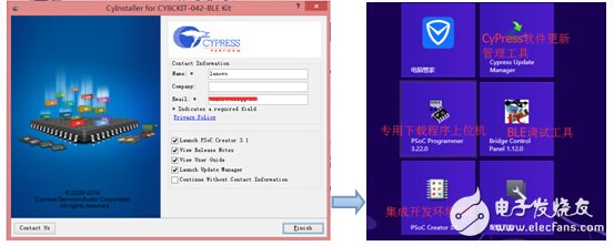 Cypress在去年的雙十一推出高集成度的單芯片低功耗藍(lán)牙解決方案——PSoC? 4 BLE 可編程片上系統(tǒng),以簡化基于傳感器的低功耗物聯(lián)網(wǎng)應(yīng)用設(shè)計(jì)。低功耗藍(lán)牙解決方案PSoC? 4 BLE 可編程片上系統(tǒng)具有史無前例的易用性和高集成度,可用于物聯(lián)網(wǎng)、智能家居、醫(yī)療設(shè)備、運(yùn)動(dòng)健身監(jiān)控以及其他可穿戴智能設(shè)備中。同時(shí),Cypress推出CY8CKIT-042-BLE開發(fā)套件,使用戶在保持采用PSoC 4先鋒套件進(jìn)行的基礎(chǔ)設(shè)計(jì)的同時(shí),輕松過渡到賽普拉斯BLE器件。該開發(fā)套件包括了一個(gè)USB BLE 收發(fā)器,可與CySmart主控仿真工具進(jìn)行配對,將用戶的Windows? PC轉(zhuǎn)化為一個(gè)低功耗藍(lán)牙調(diào)試環(huán)境。很榮幸能從Cypress公司拿到該套件,下面咱們一起來體驗(yàn)CY8CKIT-042-BLE低功耗藍(lán)牙開發(fā)套件。