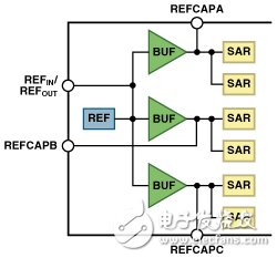 另外,設(shè)計不佳的參考電路可能導(dǎo)致嚴重的轉(zhuǎn)換錯誤。參考電路問題最常見的表現(xiàn)是“粘連”代碼,其原因可能是儲能電容的尺寸和位置、驅(qū)動強度不足或者輸入存在大量噪聲。 精密逐次逼近型ADC的基準電壓源設(shè)計 計作者:Alan Walsh (模擬對話第47卷第 2期,2013年)詳細討論了SAR ADC的基準電壓源設(shè)計。