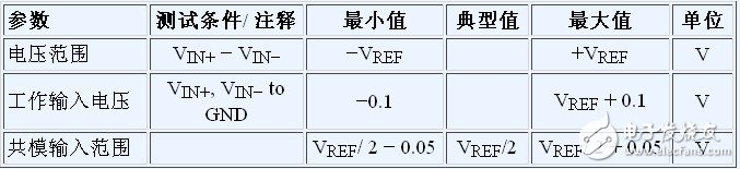 例如,AD7960 18位、 5 MSPS SAR ADC的差分輸入范圍為–VREF 至 +VREF, 但折合到地的 VIN+ 和 VIN? ?都應(yīng)該處于–0.1 V至 VREF + 0.1 V的范圍內(nèi),且共模電壓應(yīng)為 VREF/2左右,如表1所示。