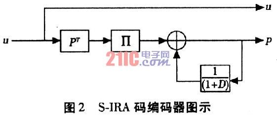 ??? 由于H2的差分形式,可以直接使用校驗矩陣H進行編碼,為了降低編碼復(fù)雜度,將H1設(shè)計成準(zhǔn)循環(huán)形式,即為結(jié)構(gòu)化的IRA碼(S-IRA)。但如果將H1直接構(gòu)造成準(zhǔn)循環(huán)形式,H2的雙對角線形式會使構(gòu)造出的校驗矩陣最小漢明距離太小,而先構(gòu)造與H1相同大小的準(zhǔn)循環(huán)矩陣P,再將P進行行交織得到H1則可以避免這個問題。