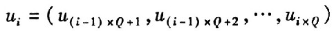 ??? 假設(shè)準(zhǔn)循環(huán)矩陣P的大小為M×Q行,K×Q列。其中Q×Q為P中循環(huán)置換矩陣和全零矩陣的大小。將信息序列u順序分成K段,每段長為Q比特,即u=(u1,u2,…,uK),其中。將準(zhǔn)循環(huán)矩陣P寫作: