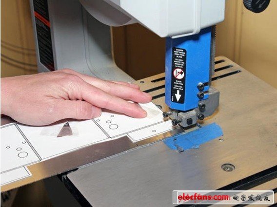 ● 用帶鋸機(jī)把鋁合金片切成圖紙的形狀,切割的邊緣一定要在線外