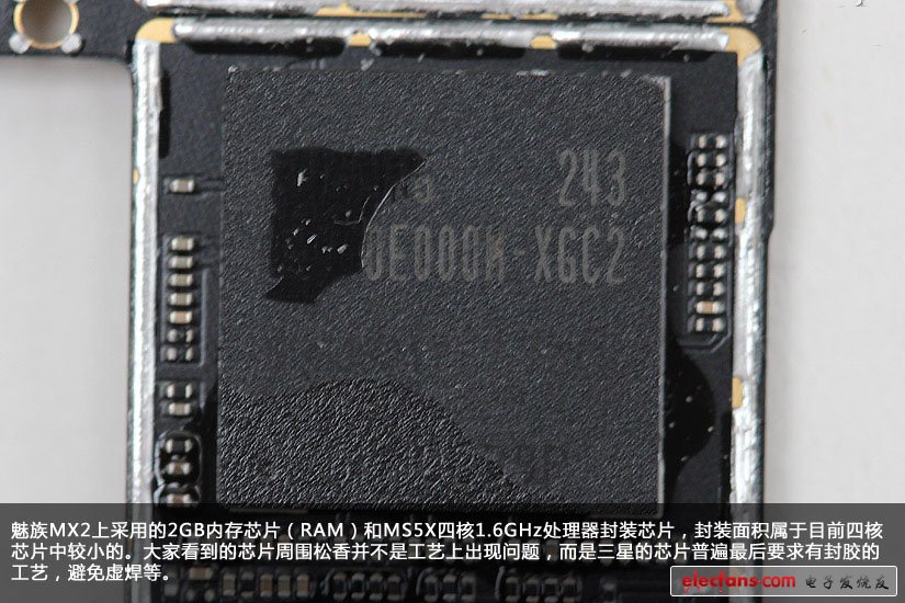 主板背部的芯片特寫 - 魅族MX2深度拆解:三星何以擔(dān)綱主演處理器大戲?