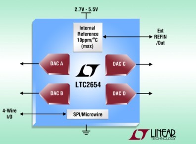 Linear推出4通道電壓輸出16位和12 位DAC系列