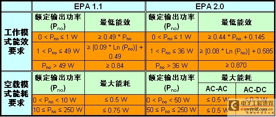 表1:美國環(huán)保署"能源之星"外部電源的1.1及2.0版規(guī)范。