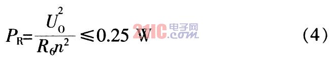 將Uo=400 V,n=10代人式(4)得:R6≥8.4 kΩ,因此R6可選22 kΩ.0.25 W。