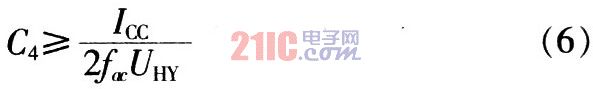 ??? 在輔助繞組提供器件正常工作的能量之前,C4必須提供足夠的能量為器件供電,C4應(yīng)滿足