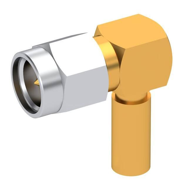 SMA Connector Plug, Male Pin 50 Ohms Free Hanging (In-Line), Right Angle Crimp