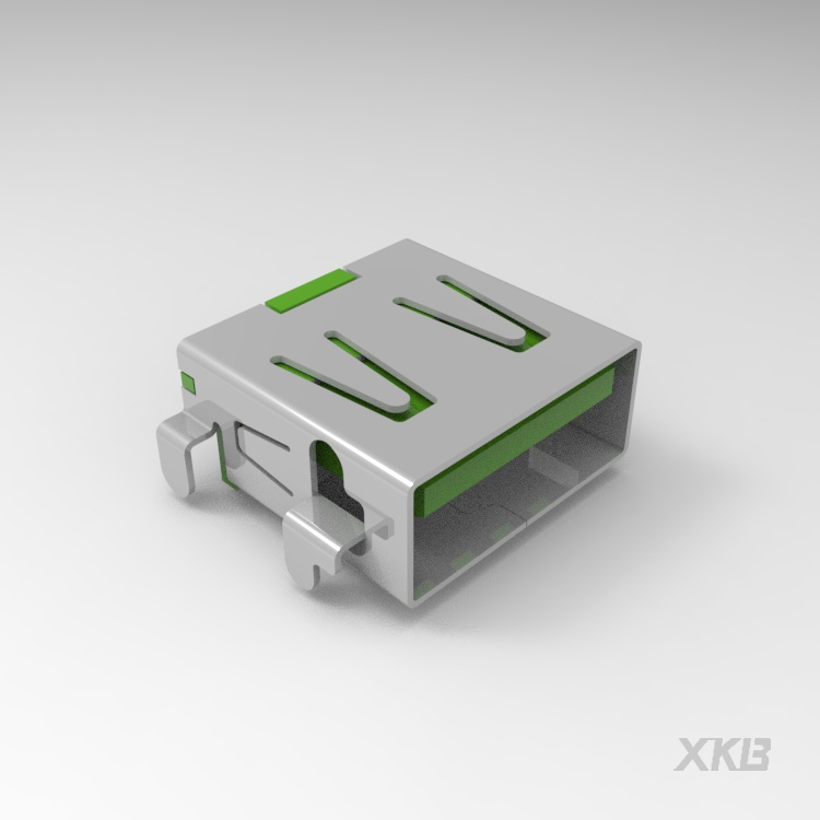 USB 2.0連接器 AF沉板1.1 5P大電流成品PA10T綠色,G/F,不銹鋼殼鍍鎳