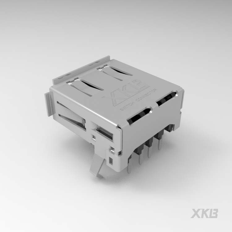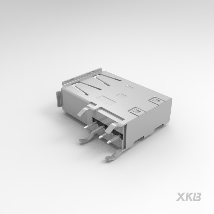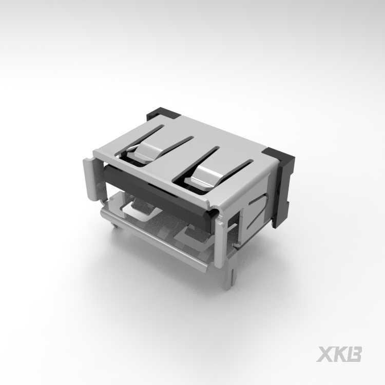 USB 2.0連接器,母座,90度,大后蓋,彎腳,卷口,銅殼,黑膠PBT,端子高導(dǎo)銅,過(guò)3A電流