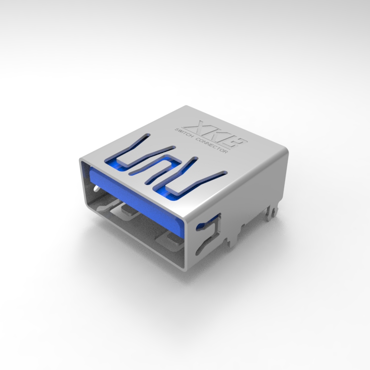 USB3.0連接器 AF9P藍(lán)膠快充專(zhuān)用板上5.72專(zhuān)用,藍(lán)色膠芯,銅殼,PA9T,鍍金1U"3A