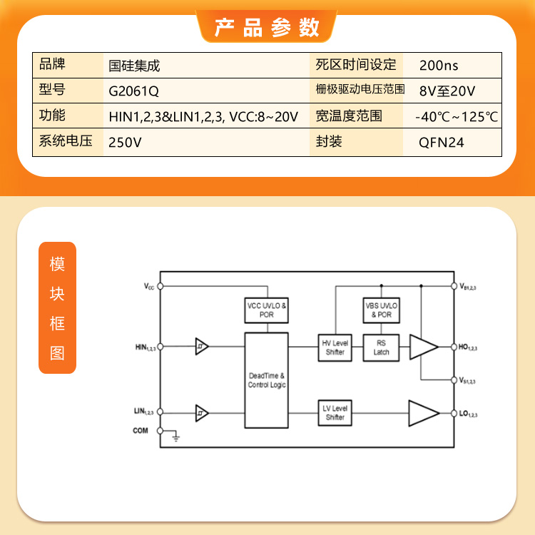 國硅集成G2063Q 250V 1.5A 三相高低側(cè)功率柵極驅(qū)動芯片應(yīng)用電機(jī)驅(qū)動