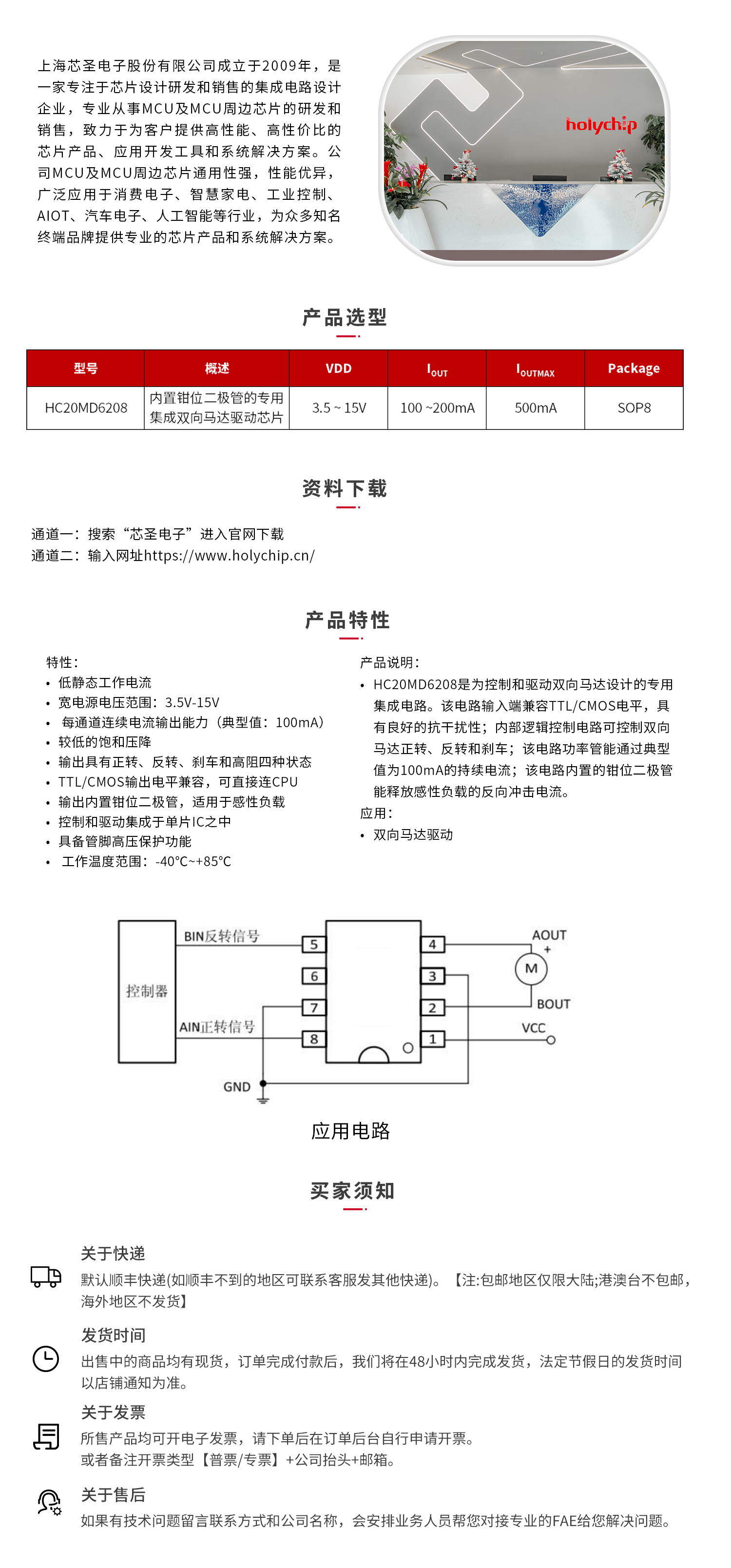 芯圣原廠(chǎng)HC20MD6208雙向馬達(dá)驅(qū)動(dòng)芯片SOP8