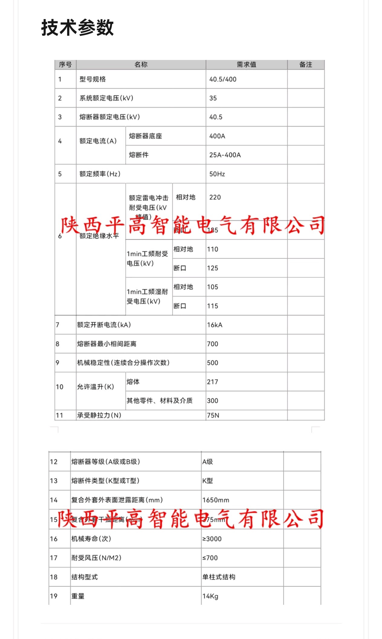 - 額定電壓:40.5KV(適用于35KV系統(tǒng))。