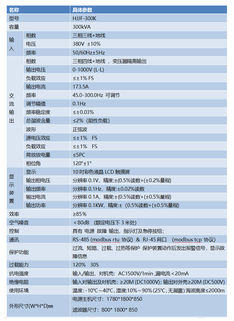 380V50Hz轉(zhuǎn)1000V300Hz三相無局放變頻電源300KVA型號HJJF-300K