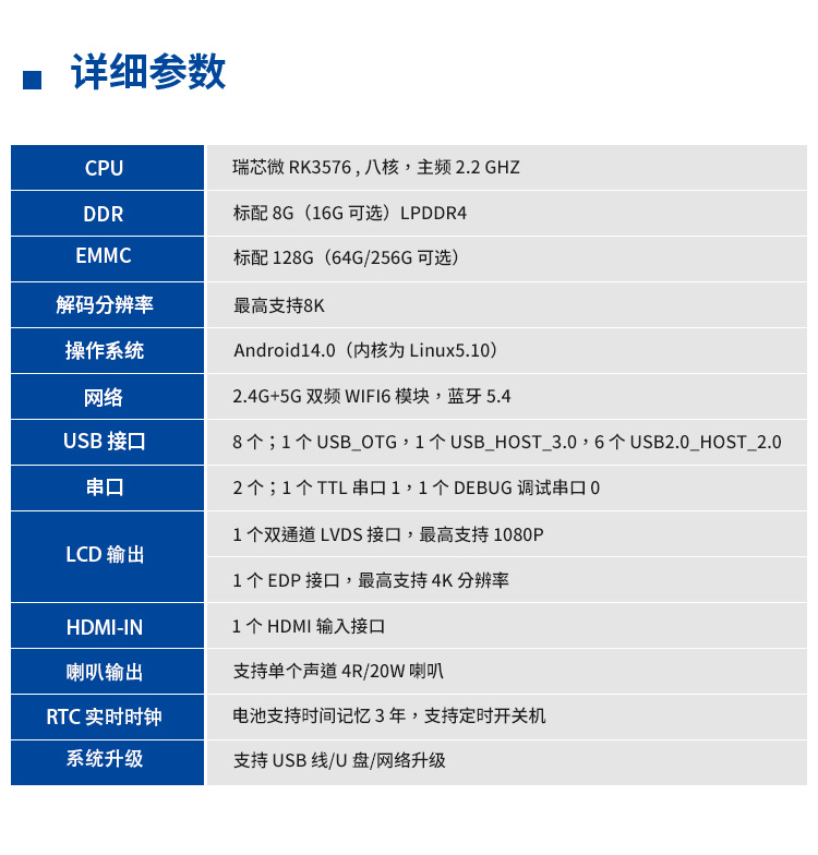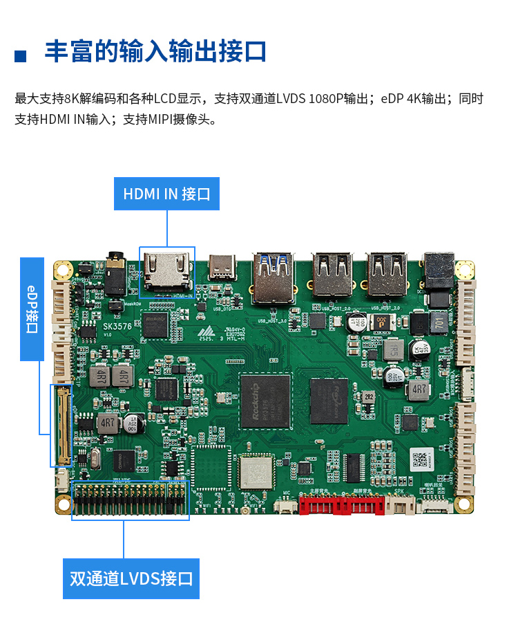 Linux5.10),GPU 采用 ARM G52 MC3,性能突出,性價(jià)比高。支持 8K視頻編解碼,8K 顯示輸出,內(nèi)置多種顯示接口,支持多屏異顯;接口豐富,易于擴(kuò)展。
