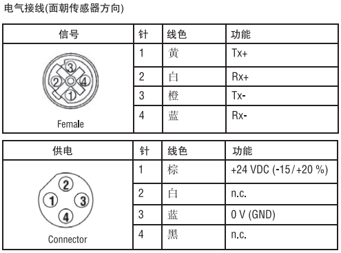接頭選型 | 2個4針M12信號接頭;1個4針M12電源接頭 |