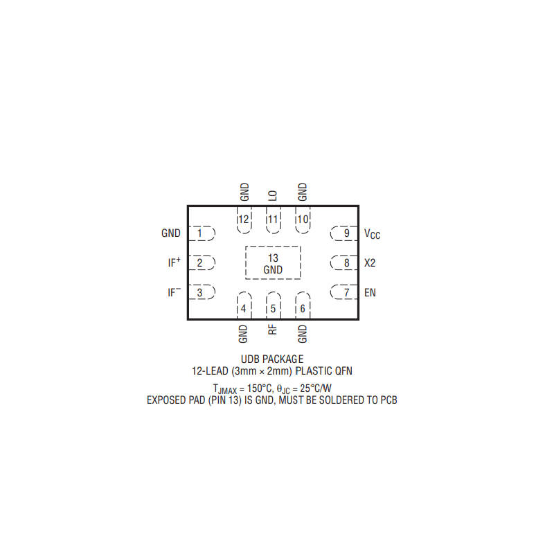 LO 頻率范圍:1GHz 至 12GHz(集成 LO 放大器,僅需 0dBm 驅(qū)動)