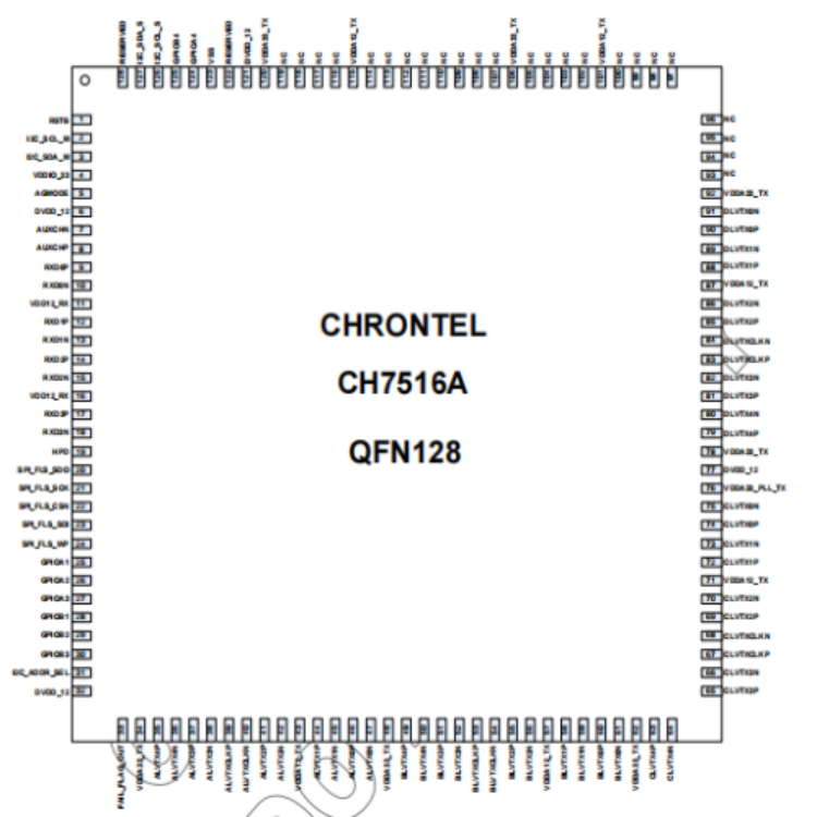 產(chǎn)品型號:CH7516A 品牌:Chrontel昆泰 型號:CH7516A 功能:DP轉(zhuǎn)LVDS 封裝:QFN128(12.5 x 12.mm) -