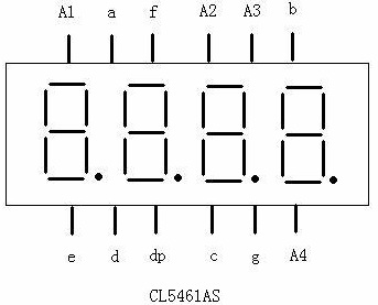 管腳并聯(lián)在一起,作為數(shù)碼管數(shù)據(jù)輸入端;分別引出各個(gè)數(shù)碼管的陰極A1~A4。 只要在A1~A4 管腳上輪流加低電平其 頻率大于40Hz ,可實(shí)現(xiàn)四個(gè)數(shù)碼管同時(shí)被點(diǎn)亮的視覺效果。在點(diǎn)亮不同數(shù)碼管的同時(shí)輸入不同的數(shù)據(jù),即可在數(shù)碼管上同時(shí)顯示四位不同的數(shù)字。 2. 驅(qū)動(dòng)八位數(shù)碼