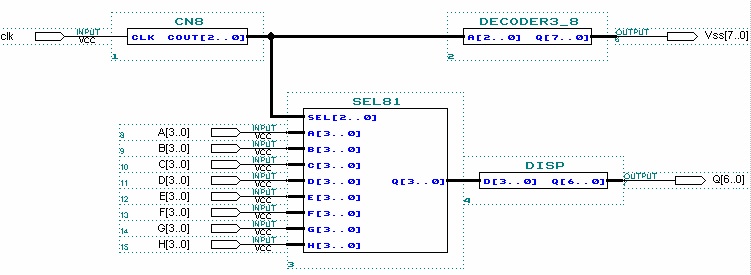 了解教學(xué)系統(tǒng)中8位八段數(shù)碼管顯示模塊的工作原理,設(shè)計(jì)標(biāo)準(zhǔn)掃描驅(qū)動(dòng)電路模塊,以備后面實(shí)驗(yàn)用。