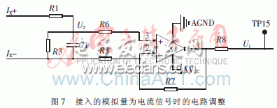 (2)當(dāng)接入的模擬量為電流信號(hào)時(shí),電路調(diào)整如圖7所示。