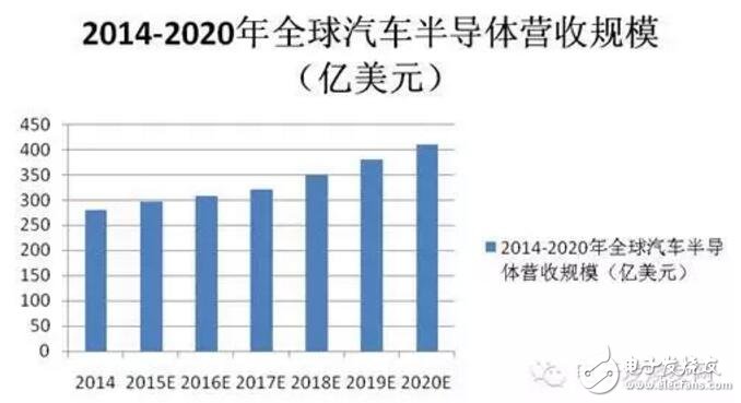圖1 2014-2020年全球汽車半導(dǎo)體營(yíng)收規(guī)模?