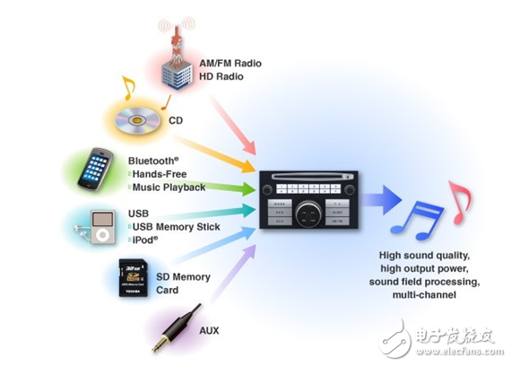 東芝提供了滿足汽車音響系統(tǒng),特別是外接幾乎所有主要音樂介質(zhì)的IC及相應(yīng)解決方案。