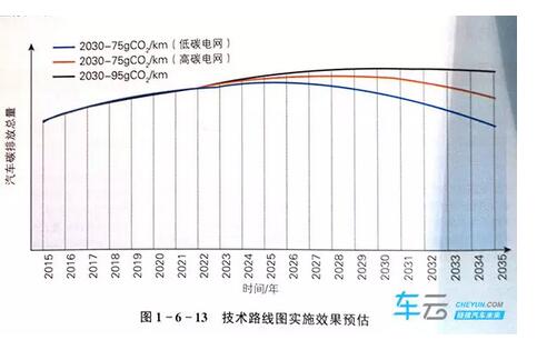 如果2030年按本次路線(xiàn)圖提出的75g/km、新能源汽車(chē)占銷(xiāo)量40%以上測(cè)算,我國(guó)汽車(chē)產(chǎn)業(yè)從油井到車(chē)輪的CO2排放總量將從2028年就開(kāi)始呈現(xiàn)下降趨勢(shì),如果2025年前我國(guó)電網(wǎng)能實(shí)現(xiàn)從高碳電網(wǎng)向低碳電網(wǎng)的轉(zhuǎn)型,汽車(chē)產(chǎn)業(yè)從油井到車(chē)輪的CO2排放總量將在2026年之后就開(kāi)始明顯下降。
