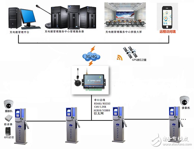 GPRS DTU上傳到后臺(tái)的服務(wù)器。這種方法的好處是現(xiàn)場(chǎng)不需要通訊線纜且不需要有接入互聯(lián)網(wǎng)的接口,如果后續(xù)想再增加充電樁也比較容易。(意義所在,運(yùn)營(yíng)成本和管理成本) 在每一個(gè)樁上面安裝GPRS DTU