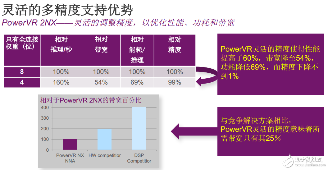 “今天谷歌、蘋果、Facebook、百度和華為等大型廠商都把AI/NN應(yīng)用于移動終端領(lǐng)域,而PowerVR 2NX是特別為移動和Android而設(shè)計的,”Imagination市場傳播副總裁David Harold說,“PowerVR 2NX不僅是業(yè)內(nèi)第一款具備支持從16位到4位高靈活度位寬的專用神經(jīng)網(wǎng)絡(luò)硬件解決方案,也是帶寬最低的神經(jīng)網(wǎng)絡(luò)(NN)解決方案,其架構(gòu)可支持多種操作系統(tǒng),包括Linux和 Android?!?/p>