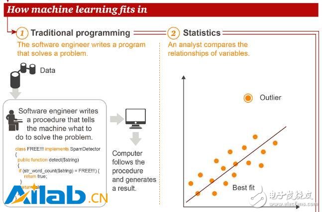 接下來(lái),我們看看機(jī)器學(xué)習(xí)在傳統(tǒng)編程、統(tǒng)計(jì)學(xué)這些常見(jiàn)方法中處于什么樣的地位。
