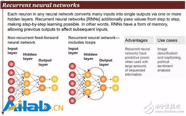 時(shí)間遞歸神經(jīng)網(wǎng)絡(luò)可以描述動(dòng)態(tài)時(shí)間行為,因?yàn)楹颓梆伾窠?jīng)網(wǎng)絡(luò)(feedforward neural network)接受較特定結(jié)構(gòu)的輸入不同,RNN 將狀態(tài)在自身網(wǎng)絡(luò)中循環(huán)傳遞,因此可以接受更廣泛的時(shí)間序列結(jié)構(gòu)輸入。手寫識(shí)別是最早成功利用 RNN 的研究結(jié)果,其他應(yīng)用還包括圖像分類、圖說(shuō)生成和情感分析。