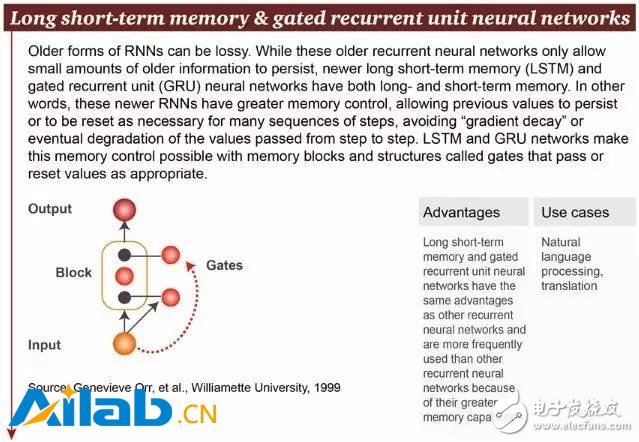 較舊的 RNN 可能是有損的(lossy),因?yàn)樗鼈冎荒鼙4嫔倭康呐f信息。但新的長(zhǎng)短期記憶(LSTM)和門控循環(huán)單元(gated recurrent unit, GRU)神經(jīng)網(wǎng)絡(luò)同時(shí)具有長(zhǎng)期記憶和短期記憶。換句話說(shuō),這些較新的 RNN 具有更好的記憶控制,允許先前的值持續(xù)保存,或必要時(shí)為許多序列步驟重置,避免在步驟到步驟的傳遞時(shí)造成“梯度衰減”(gradient decay)。LSTM 和 GRU 網(wǎng)絡(luò)通過(guò)記憶體組(memory blocks)和被稱為“門”(gates)的結(jié)構(gòu)適當(dāng)?shù)?pass 或 reset 值來(lái)實(shí)現(xiàn)這種記憶控制。