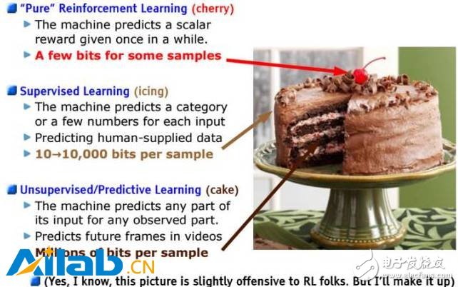 Yann LeCun在很多演講中反復(fù)提到一個著名的“蛋糕”比喻: