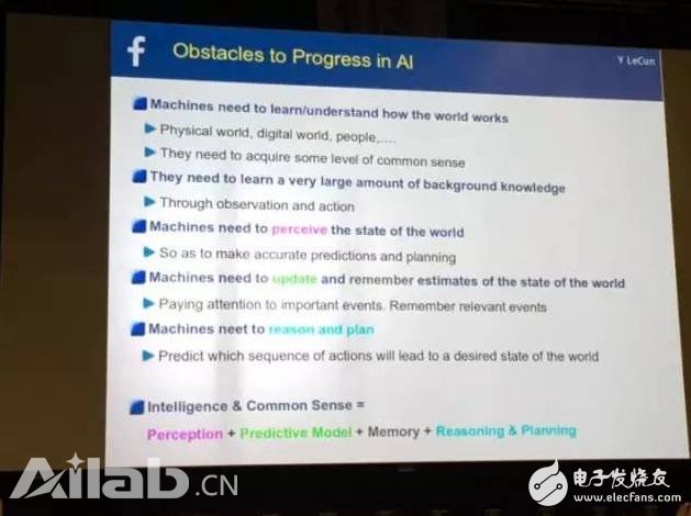 在其最新的NIPS 2016的演講中,LeCun放出了這么一張PPT,列出了AI發(fā)展中的障礙: