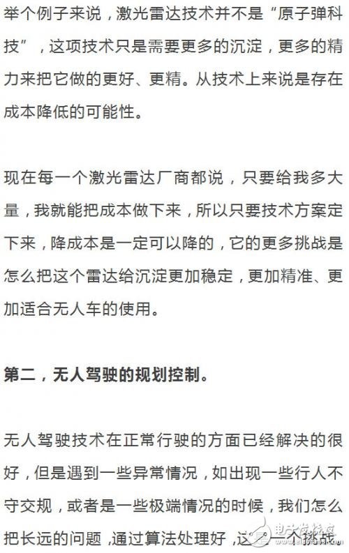 3780 創(chuàng)始核心成員李力耘博士聊了聊,李力耘表示目前無人駕駛技術(shù)上最亟待解決的技術(shù)是傳感器的能力跟它的價值的平衡、無人駕駛的規(guī)劃控制兩大問題。