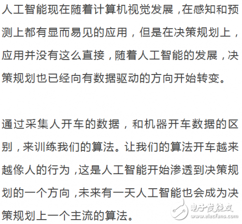 目前無人駕駛出現(xiàn)了兩種技術(shù)方向,一種是超級大腦類型,即從有人駕駛一步到無人駕駛的研究方向。另一種則是通過半自動駕駛逐步實現(xiàn)無人駕駛技術(shù)的研究路線。ADI公司汽車電子事業(yè)部大中華區(qū)市場總監(jiān)許智斌先生