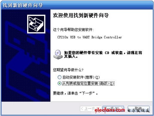 第一步:用隨機(jī) USB 通訊電纜連接儀器的 USB 插座和計算機(jī) USB口;顯示找到新硬件向?qū)?,選擇“從列表或指定位置安裝(高級)”選項,進(jìn)入下一步;
