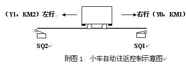 由于小車自動(dòng)往返既具有實(shí)際意義,而且隨著不同企業(yè)不同的要求,控制的難度可以不同,因此小車自動(dòng)往返可以作為一個(gè)典型案例進(jìn)行模塊分析、教學(xué),且隨著控制難度的增加,可以進(jìn)一步學(xué)習(xí)《電力拖動(dòng)與控制線路》、《安全用電》、《可編程控制器技術(shù)》等多門課程綜合內(nèi)容,本模塊主要學(xué)習(xí)PLC控制其它指令用法與實(shí)際接線、運(yùn)行。最簡(jiǎn)單的小車自動(dòng)往返控制示意圖如附圖1所示:
