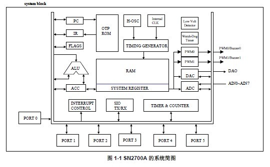 每個(gè)指令周期為一個(gè)時(shí)鐘周期 SN8P2708A:DIP 48 pins,SSOP 48 pins