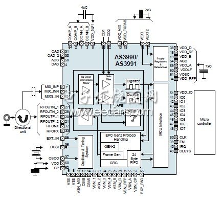 The AS3990/AS3991 UHF reader chip is an integrated analog front end and protocol handling systems for a ISO18000-6C 900MHz RFID reader system.Equipped with built-in programming options, the device is suitable for a wide range of UHF RFID applications.The R901G includes improved on-board VCO and internal PA.The reader configuration is achieved by selecting the desired protocol in control registers. Direct access to all control registers allows fine tuning of different reader parameters.
