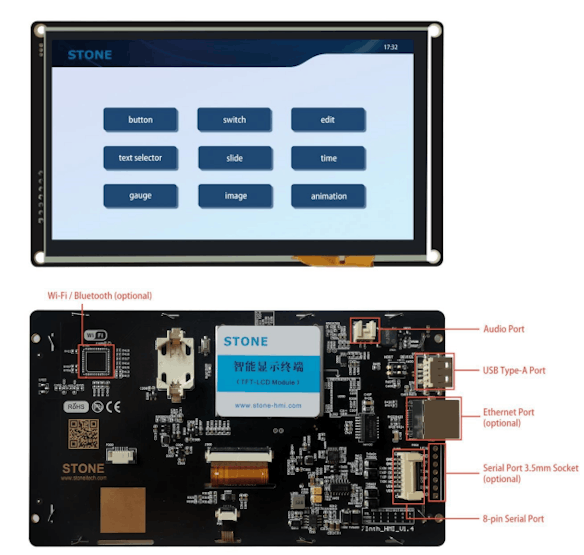 STWI070WT-01 被設想為 TFT 顯示器和觸摸控制器。它包括處理器、控制程序、驅動程序、閃存、RS232/RS422/RS485/TTL/LAN端口、Wi-Fi/藍牙、觸摸屏、電源等,是一個基于強大而簡單的顯示系統(tǒng)。操作系統(tǒng),可由任何 MCU 控制。