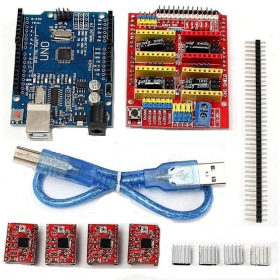 電子零件是 Nema 17 步進(jìn)電機(jī)、A4988 分線步進(jìn)電機(jī)驅(qū)動(dòng)器、Uno CNC 卡和 Arduino UNO